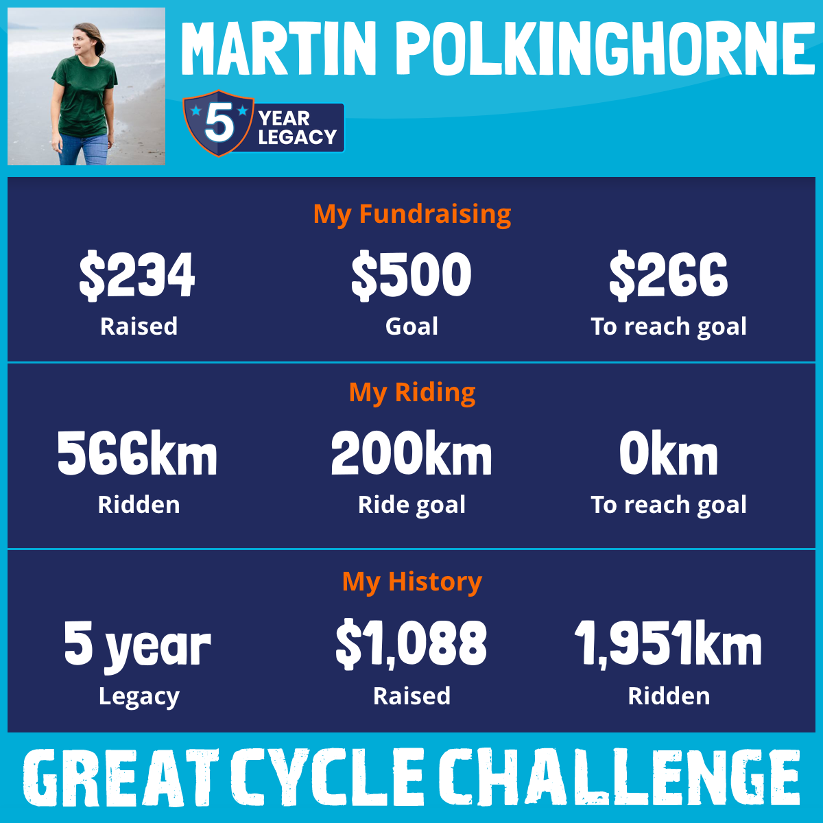 I am also riding and raising funds to support the Children's Medical Research Institute to continue their work into the prevention, diagnosis, treatment and finding a cure for childhood cancer.