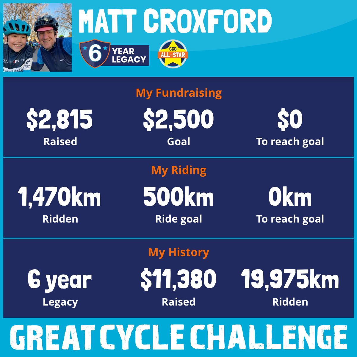 And so I am riding and raising funds to support the Children's Medical Research Institute to continue their work into the prevention, diagnosis, treatment and finding a cure for childhood cancer.