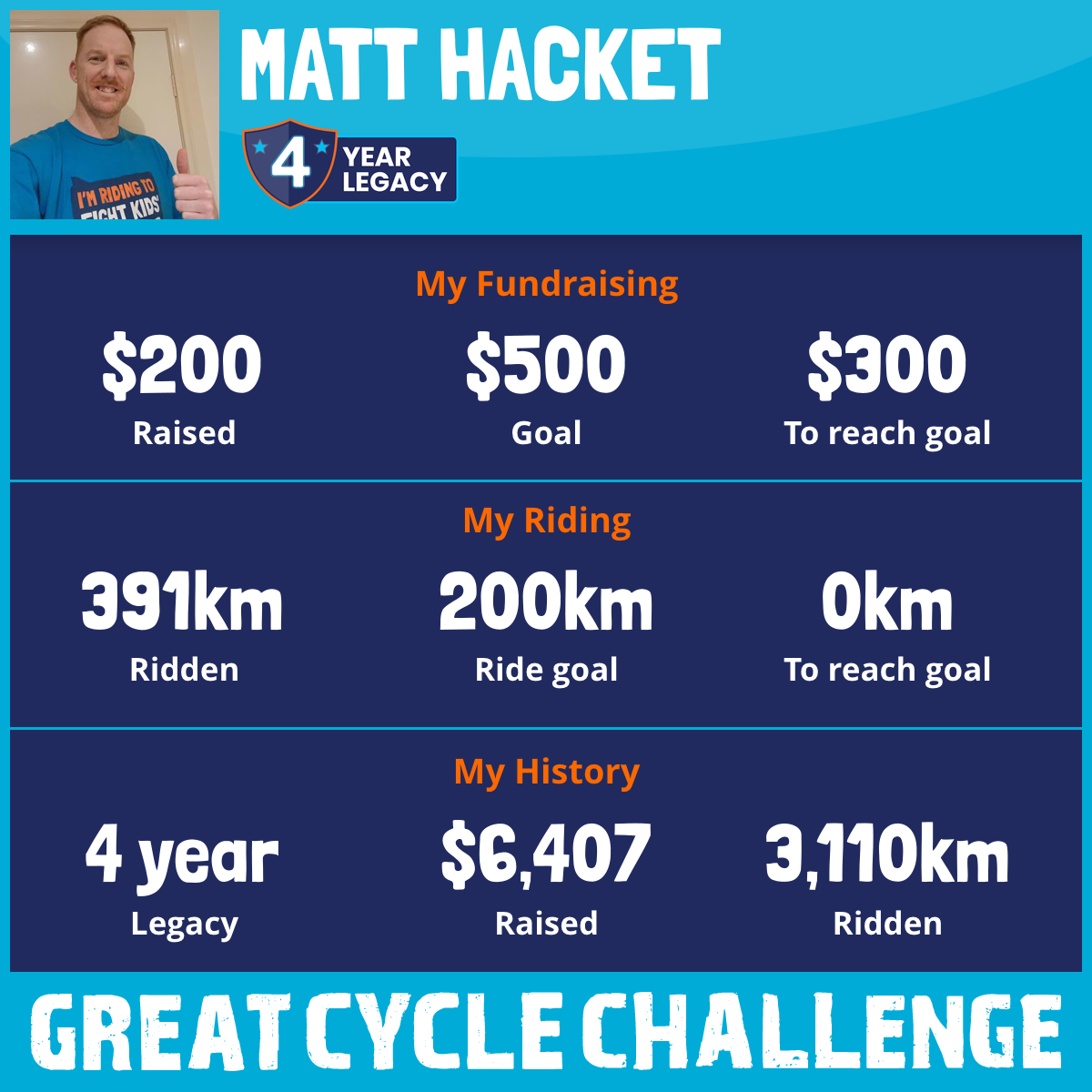 And so I am riding and raising funds to support the Children's Medical Research Institute to continue their work into the prevention, diagnosis, treatment and finding a cure for childhood cancer.