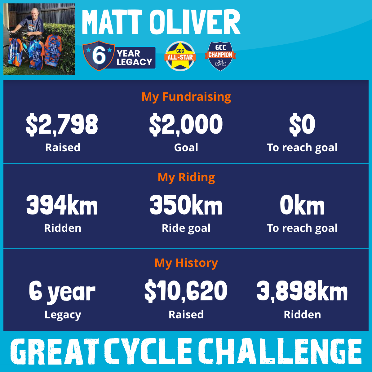394 km Ridden$2,798 Raised2026