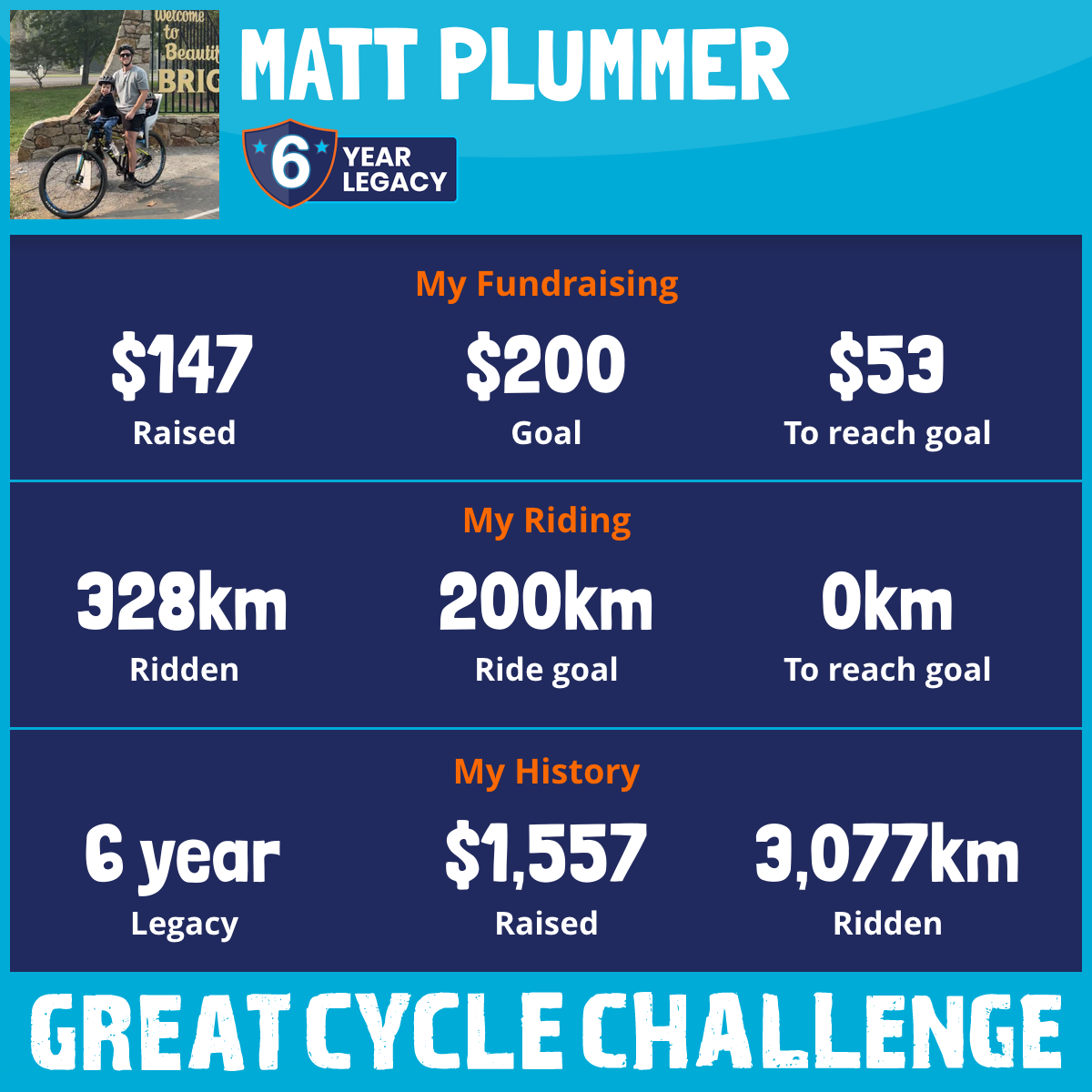 And so I am riding and raising funds to support the Children's Medical Research Institute to continue their work into the prevention, diagnosis, treatment and finding a cure for childhood cancer.