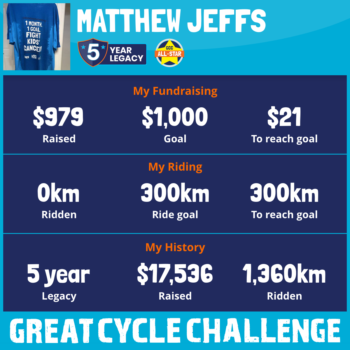 And so I am riding and raising funds to support the Children's Medical Research Institute to continue their work into the prevention, diagnosis, treatment and finding a cure for childhood cancer.
