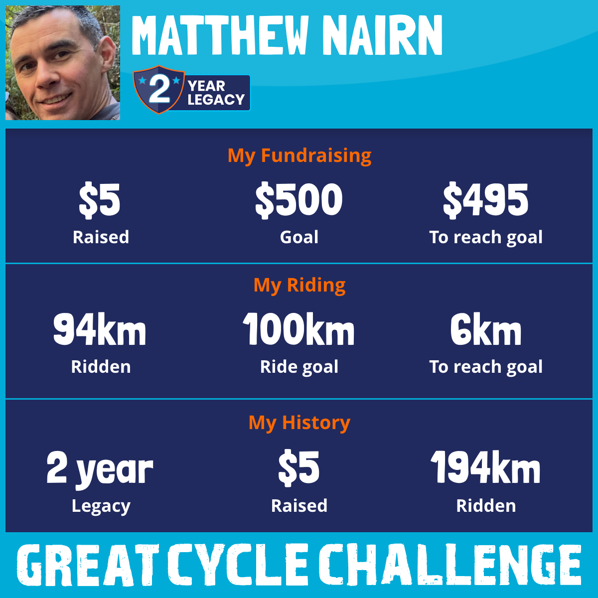 And so I am riding and raising funds to support the Children's Medical Research Institute to continue their work into the prevention, diagnosis, treatment and finding a cure for childhood cancer.