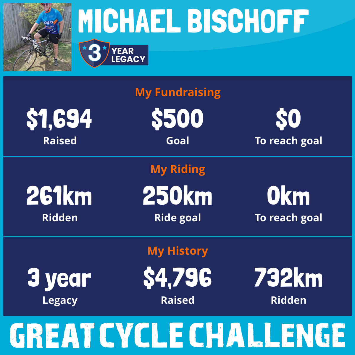 261 km Ridden$1,694 Raised2025
