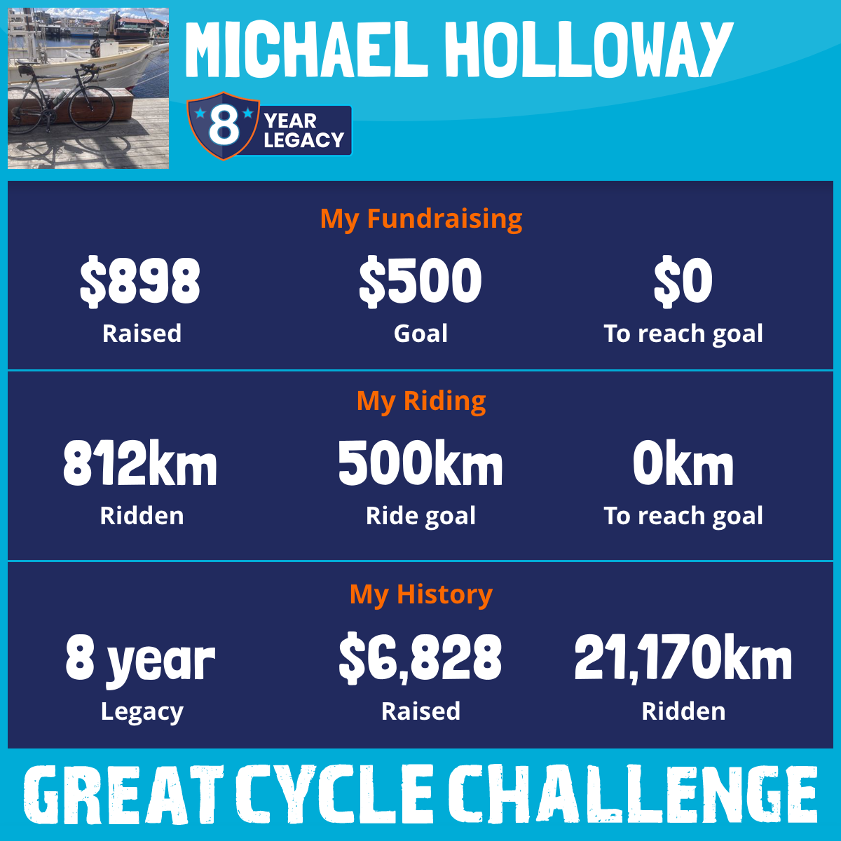 And so I am riding and raising funds to support the Children's Medical Research Institute to continue their work into the prevention, diagnosis, treatment and finding a cure for childhood cancer.