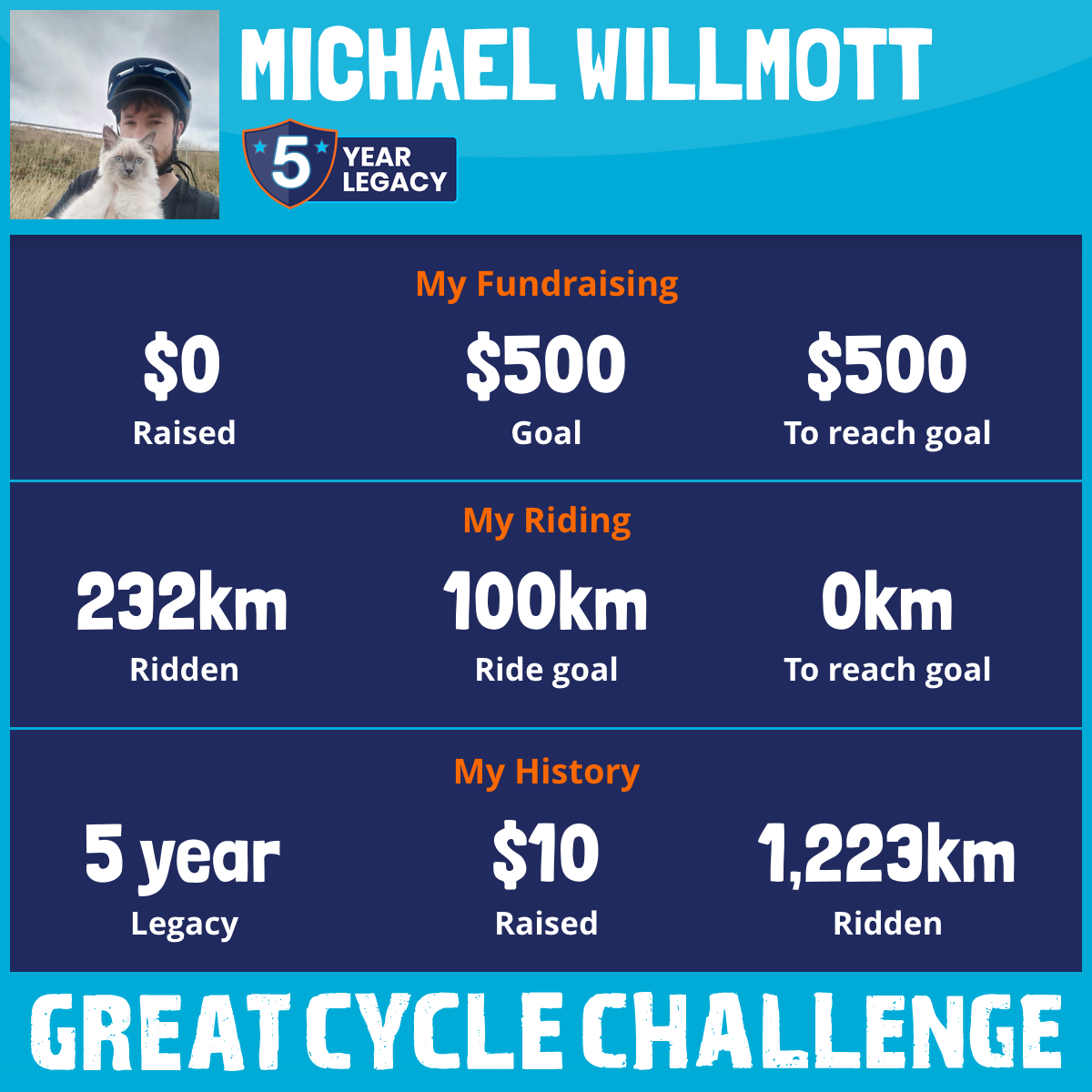 I am riding 100 km for John. Please sponsor me and support my challenge to fight kids' cancer and save little lives.