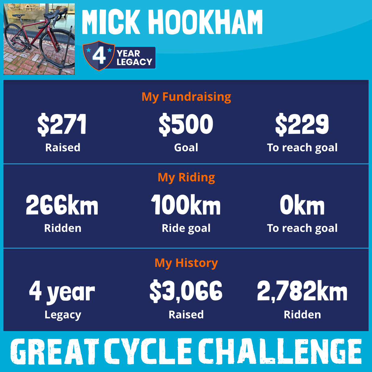 And so I am riding and raising funds to support the Children's Medical Research Institute to continue their work into the prevention, diagnosis, treatment and finding a cure for childhood cancer.