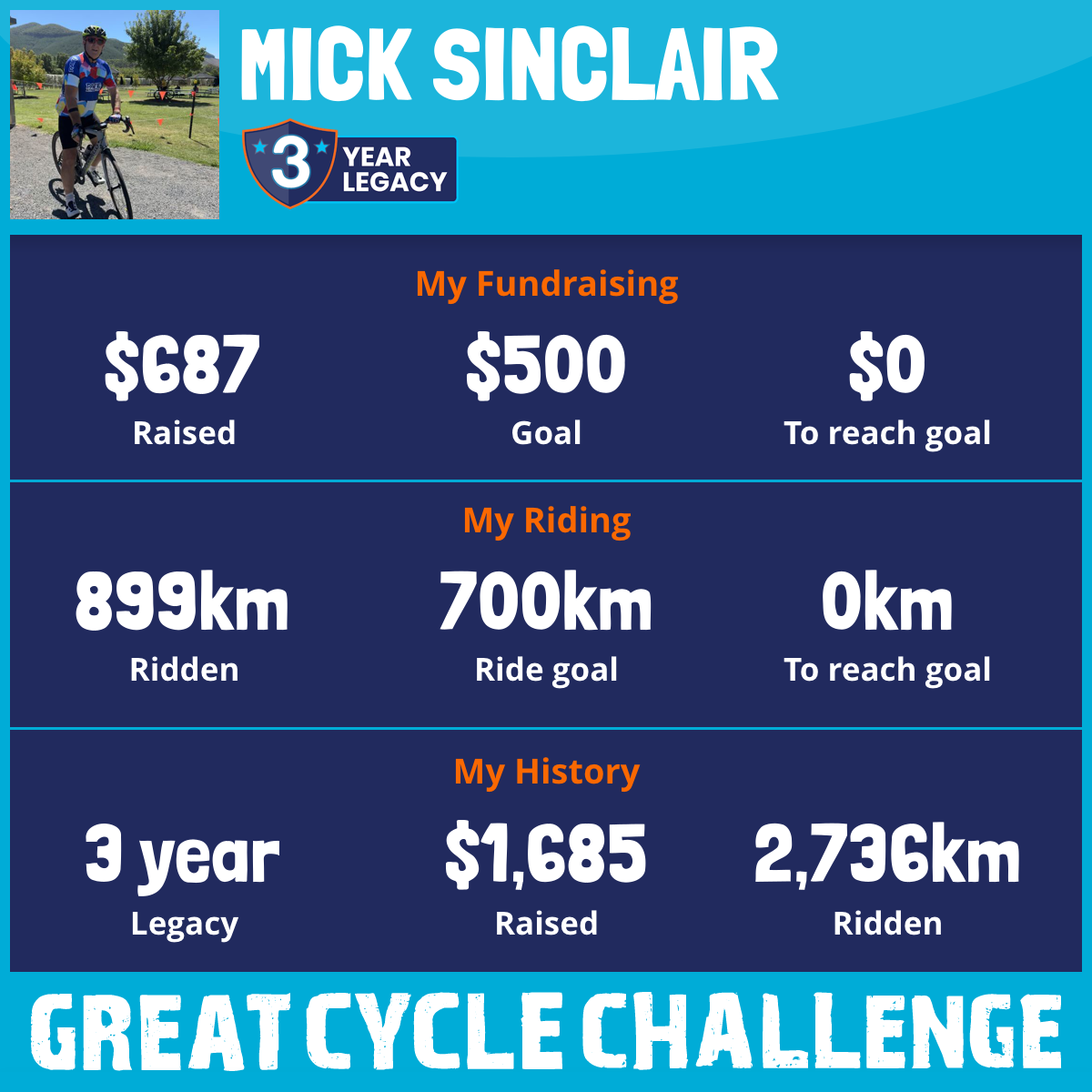 981 km Ridden$687 Raised2026