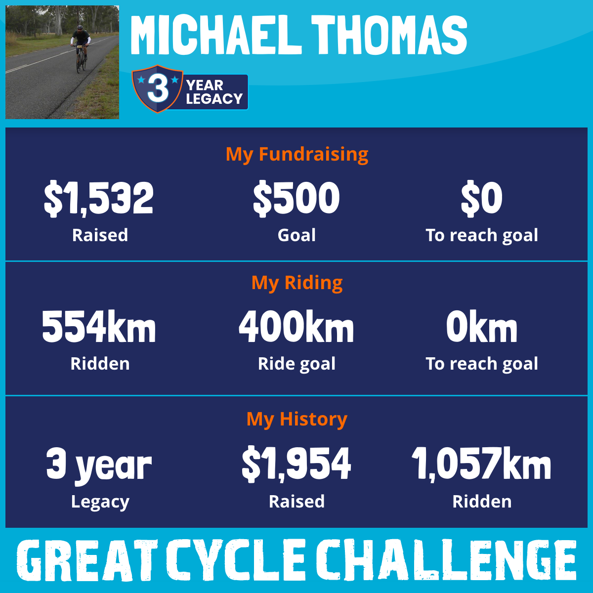 And so I am riding and raising funds to support the Children's Medical Research Institute to continue their work into the prevention, diagnosis, treatment and finding a cure for childhood cancer.