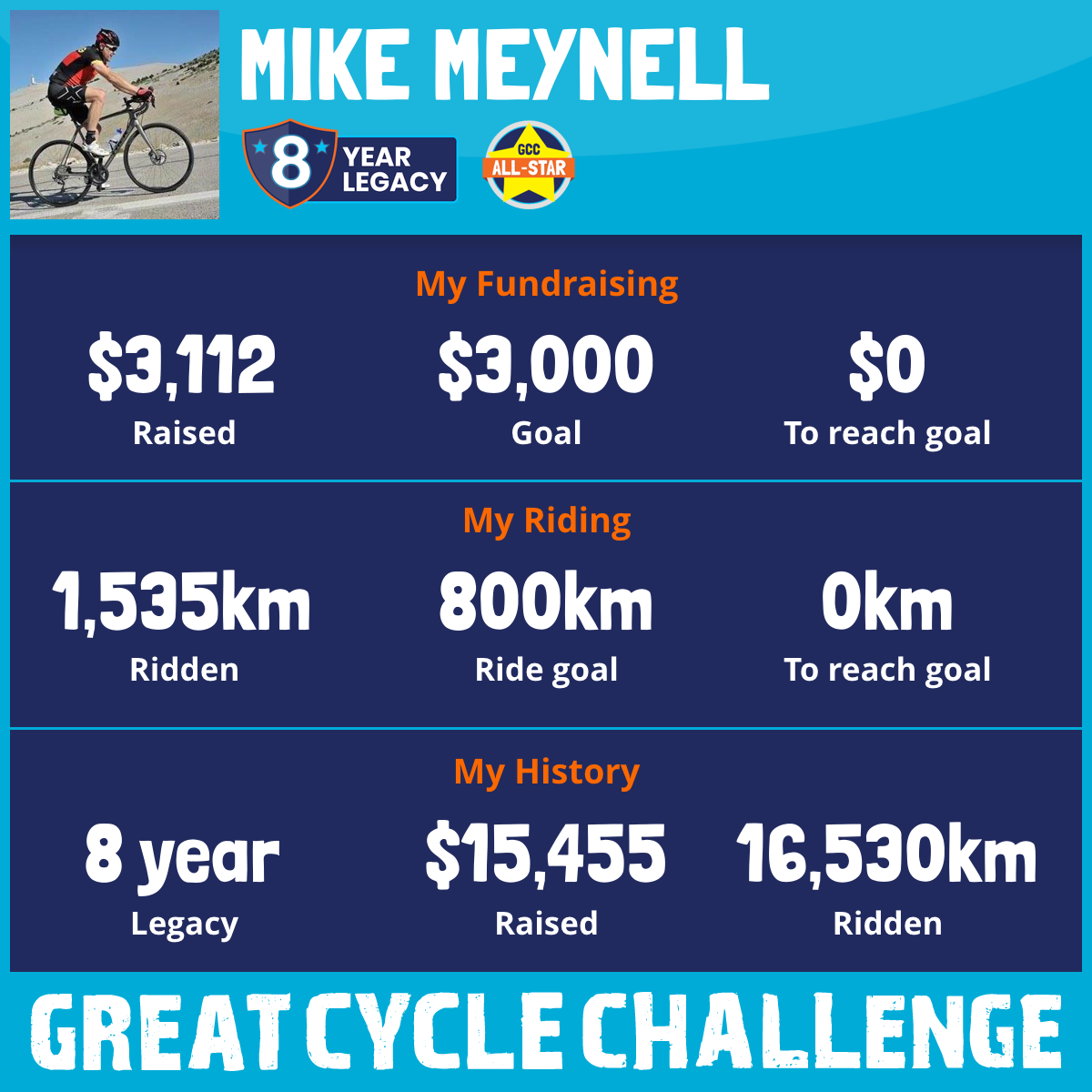 I am riding 800 km in memory of Barry Meynell. Please sponsor me and support my challenge to fight kids' cancer and save little lives.