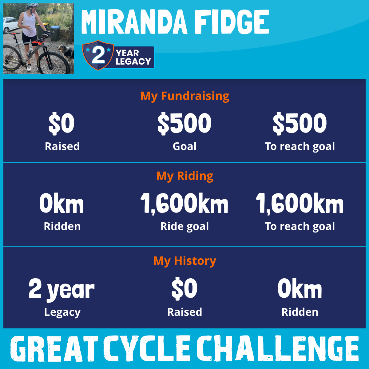 This October, I am taking part in the Great Cycle Challenge to fight kids' cancer! I will be riding 1km for every dollar donated!