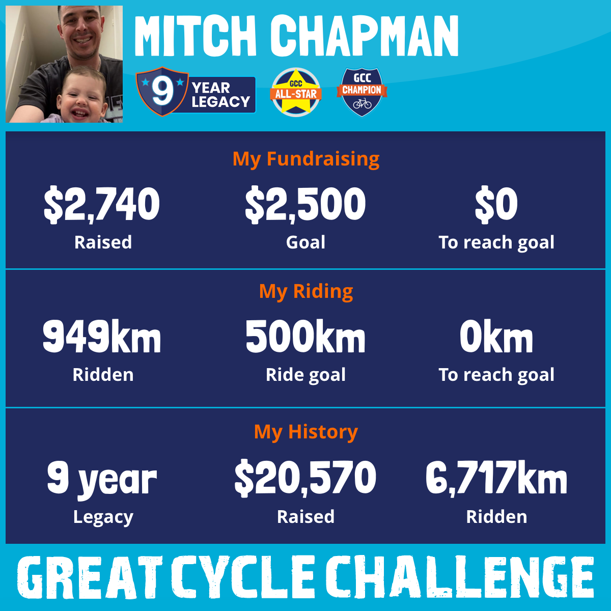 1,765 km Ridden$3,000 Raised2022