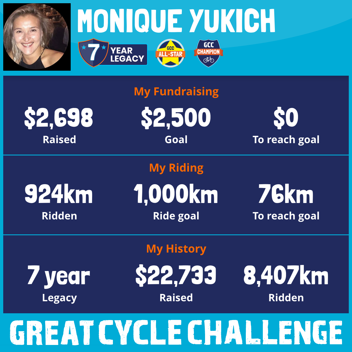 1,733 km Ridden$3,380 Raised2023
