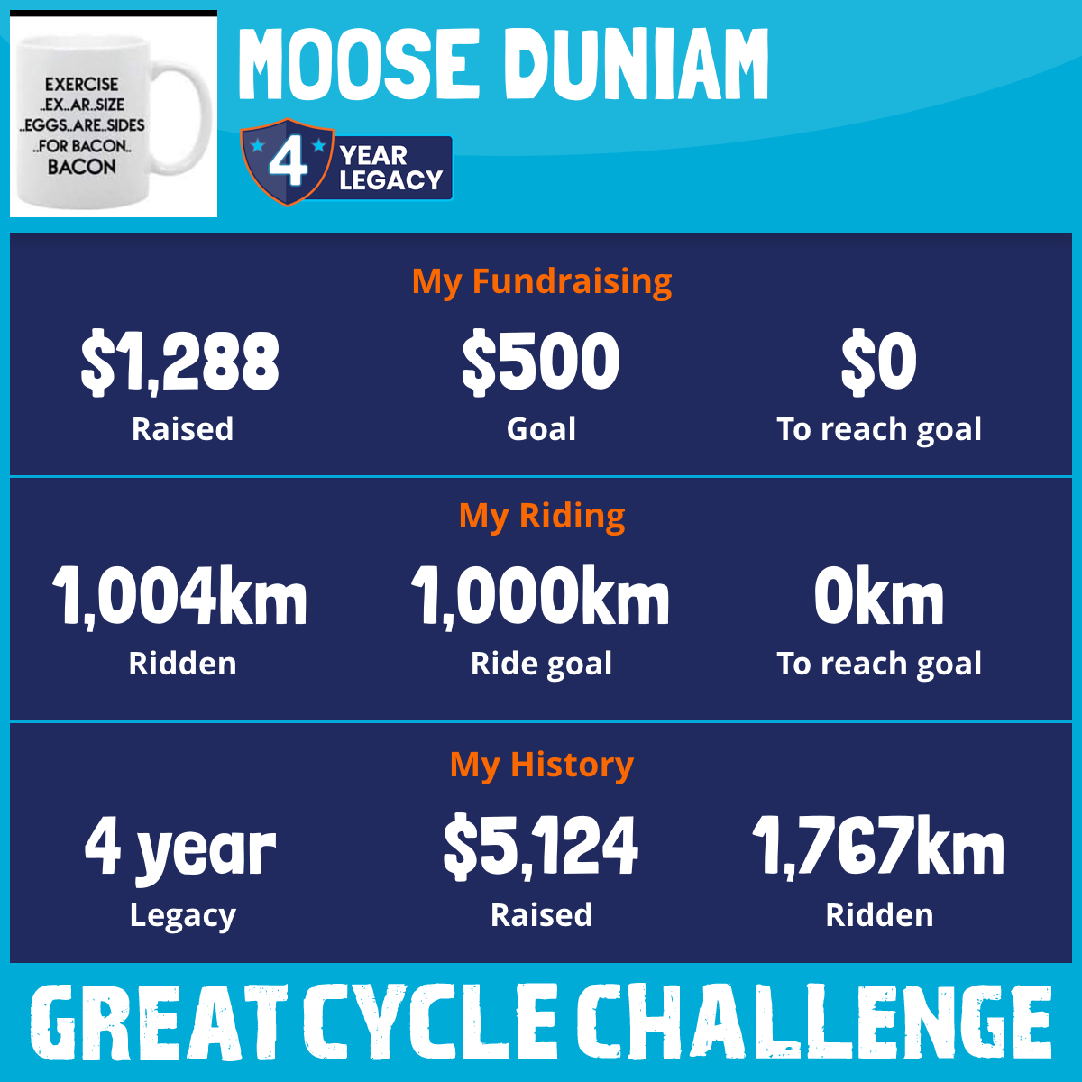 1,004 km Ridden$1,288 Raised2025