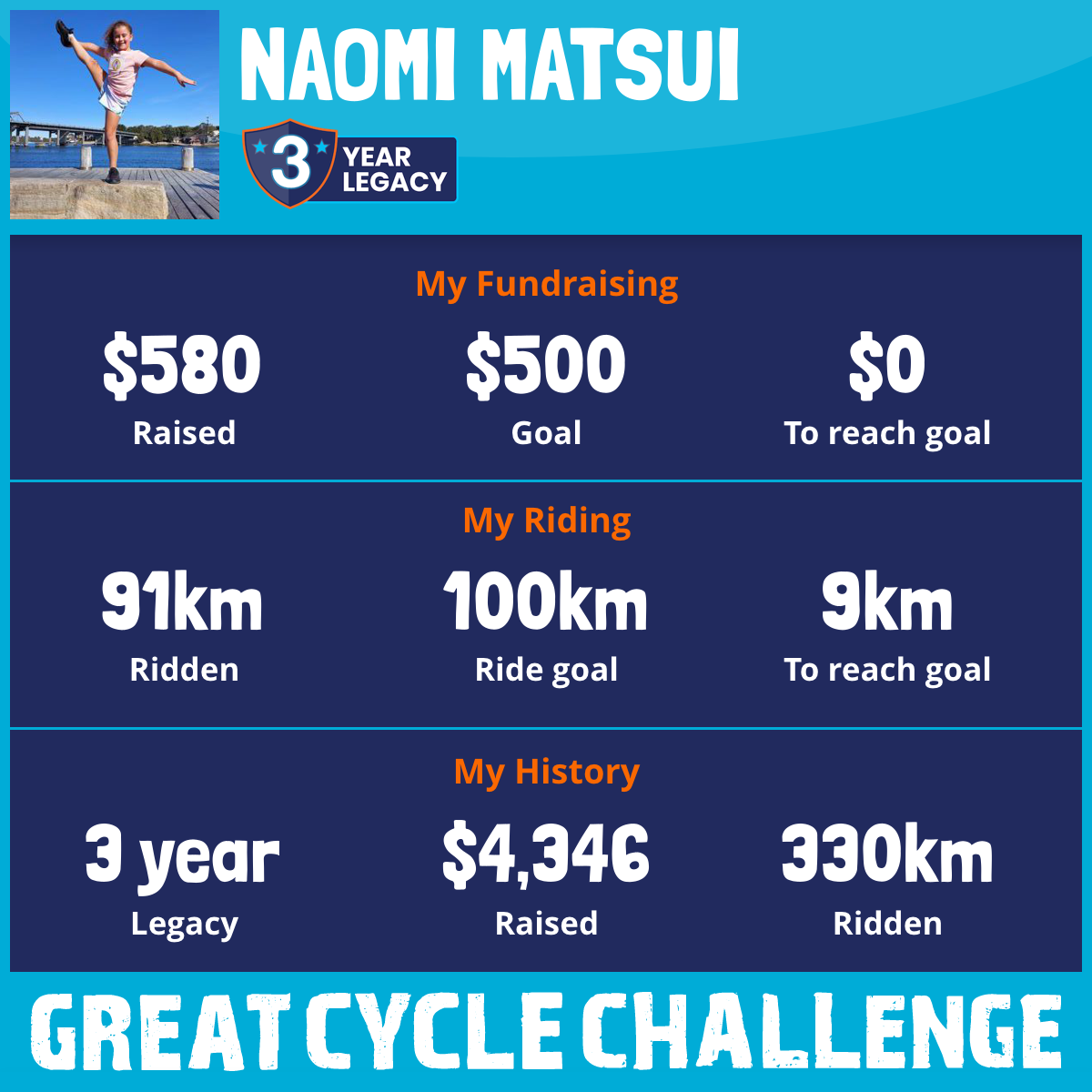 And so I am riding and raising funds to support the Children's Medical Research Institute to continue their work into the prevention, diagnosis, treatment and finding a cure for childhood cancer.