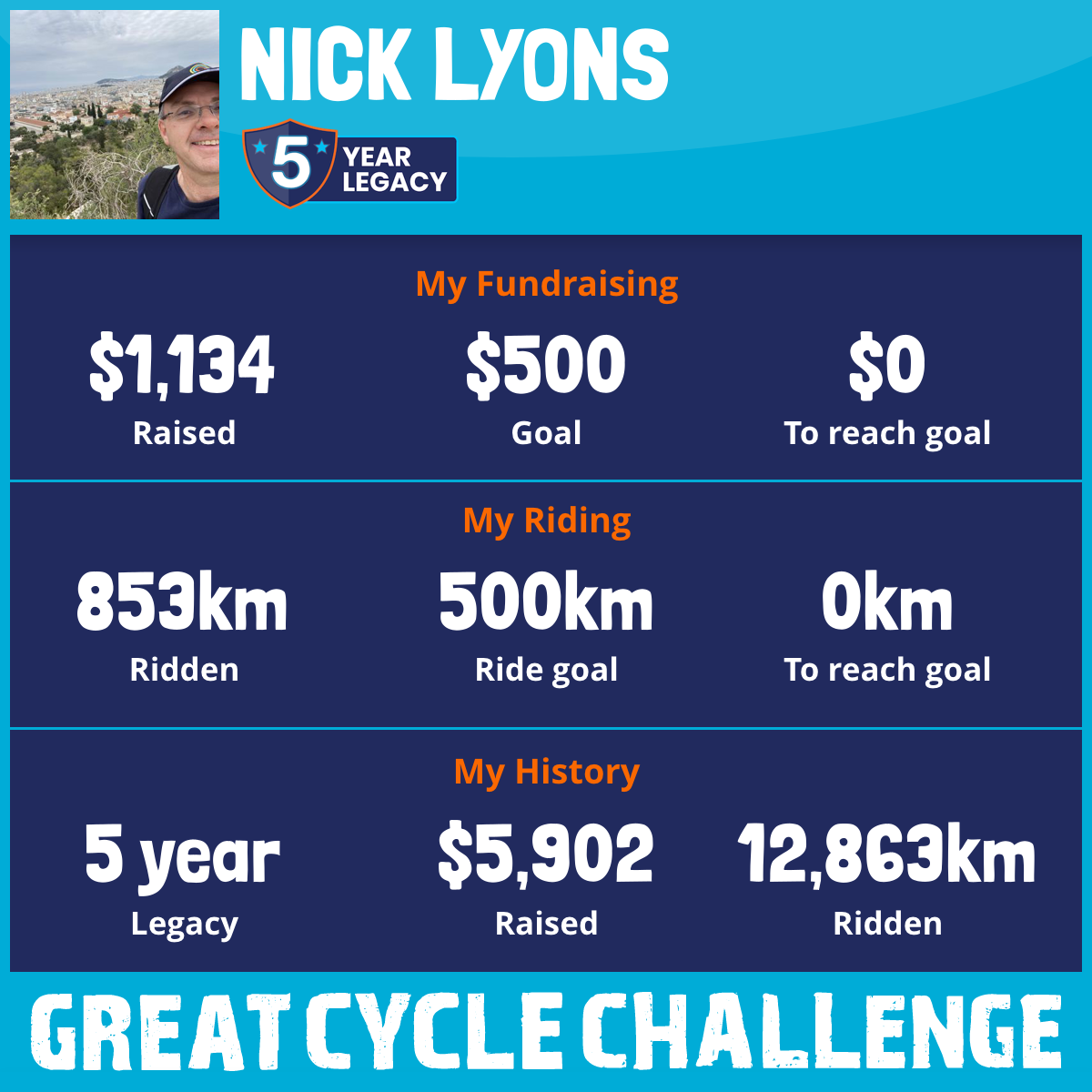 853 km Ridden$1,134 Raised2025