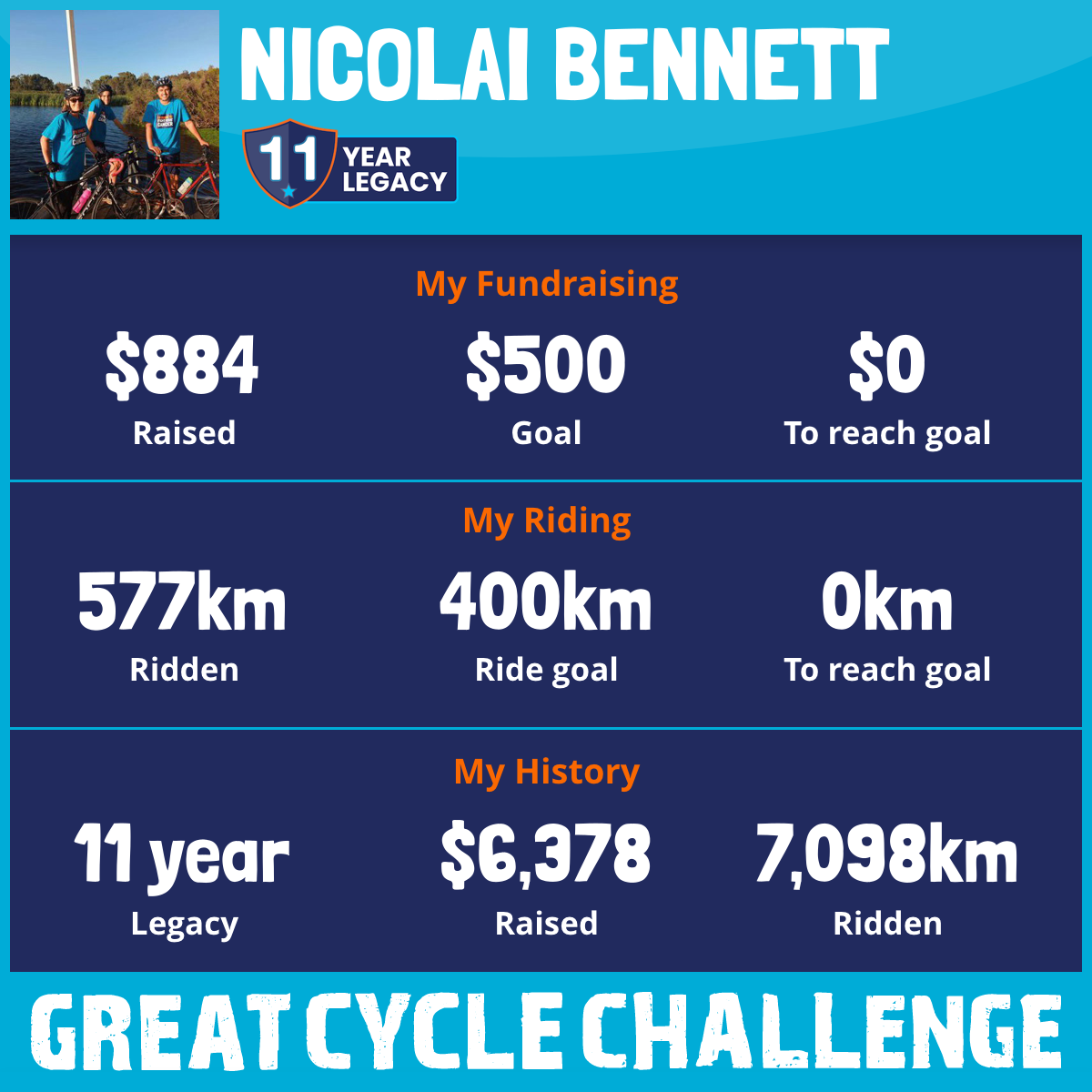 638 km Ridden$884 Raised2026