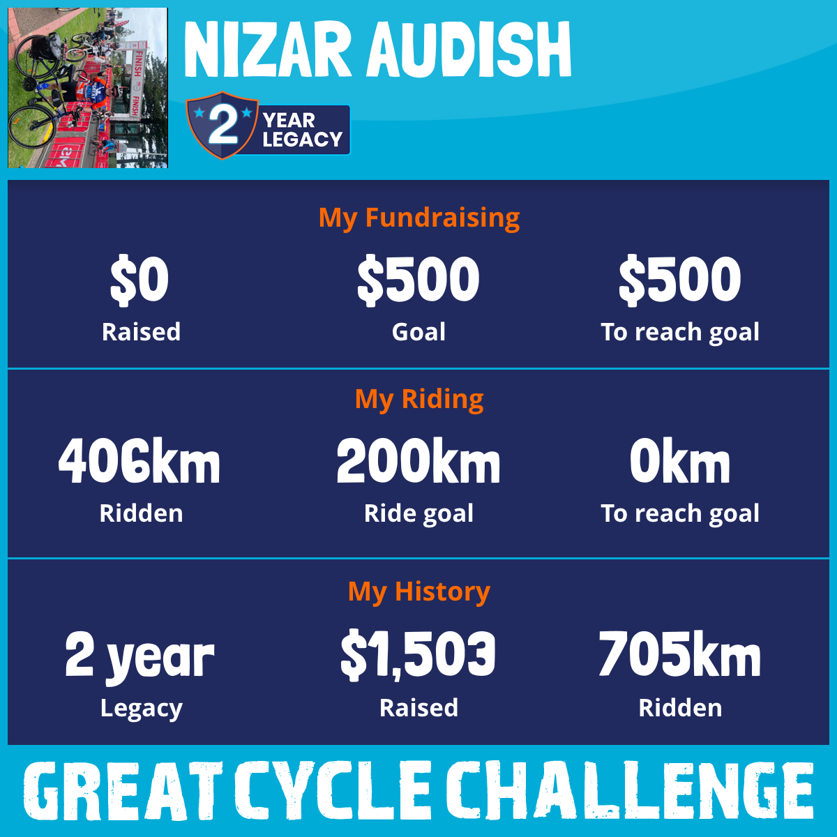 300 km Ridden$1,503 Raised2024
