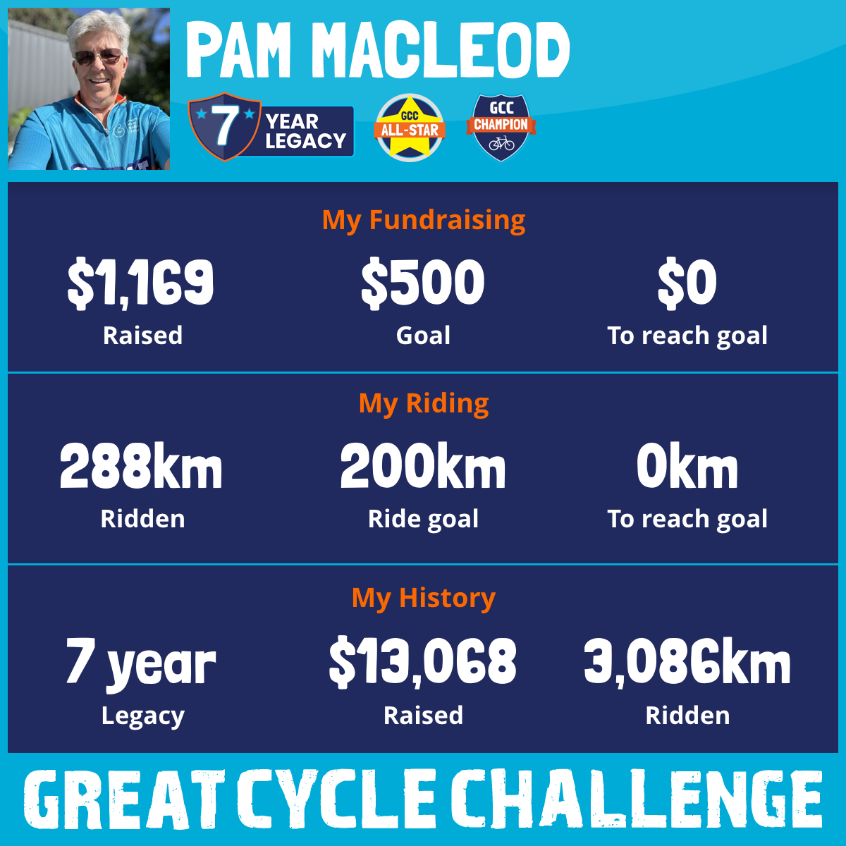 288 km Ridden$1,169 Raised2026