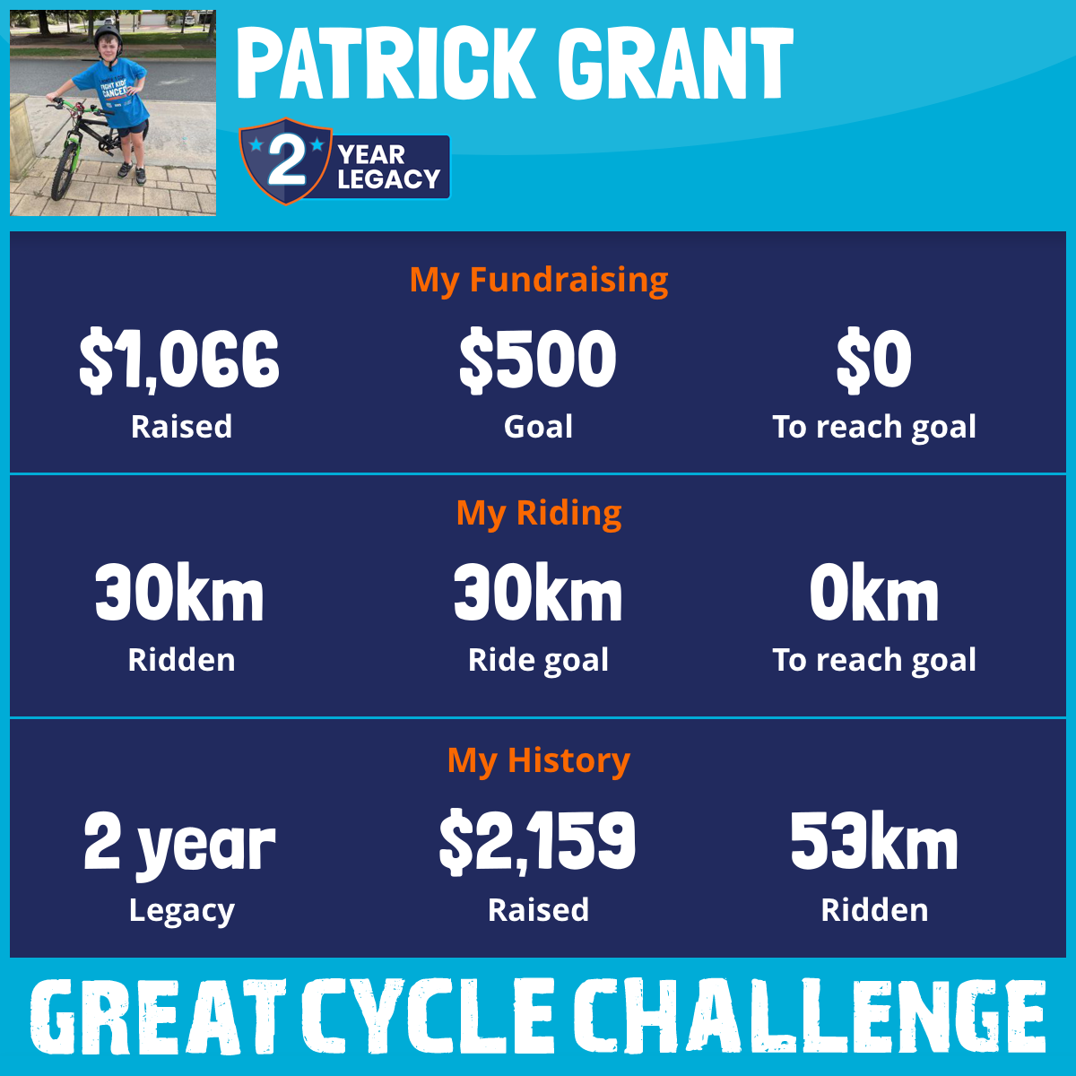 30 km Ridden$1,066 Raised2026