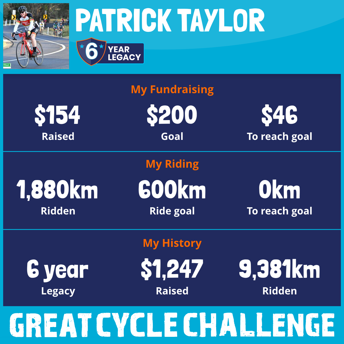 I am riding 600 km in memory of my wife, Christine Taylor. Please sponsor me and support my challenge to fight kids' cancer and save little lives.