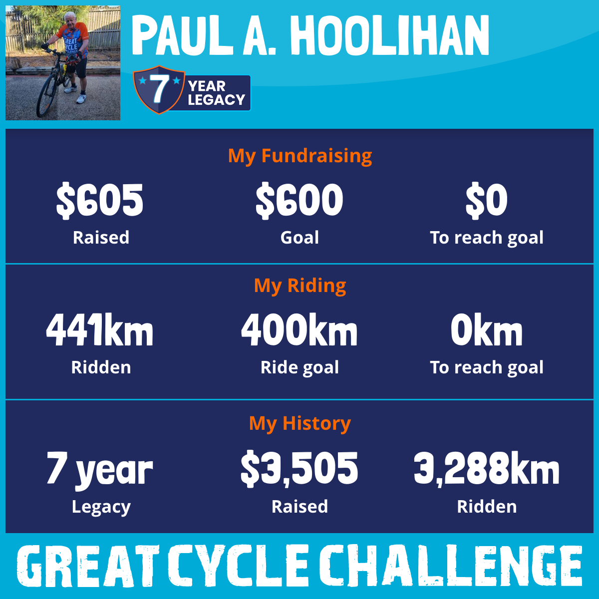 441 km Ridden$605 Raised2026