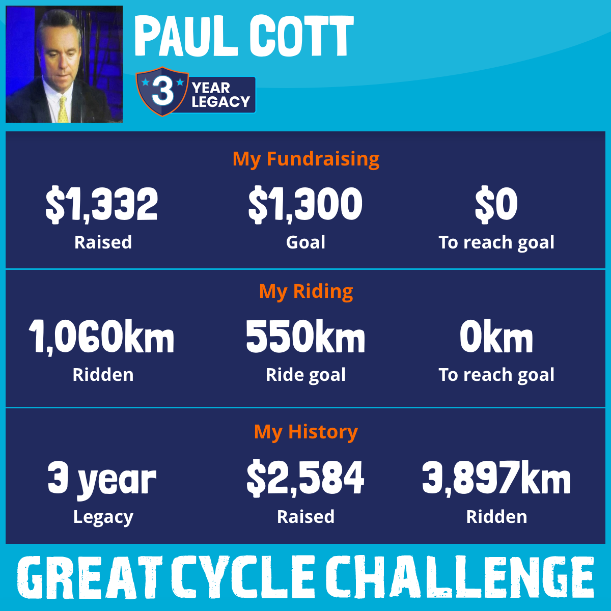 1,497 km Ridden$1,332 Raised2026