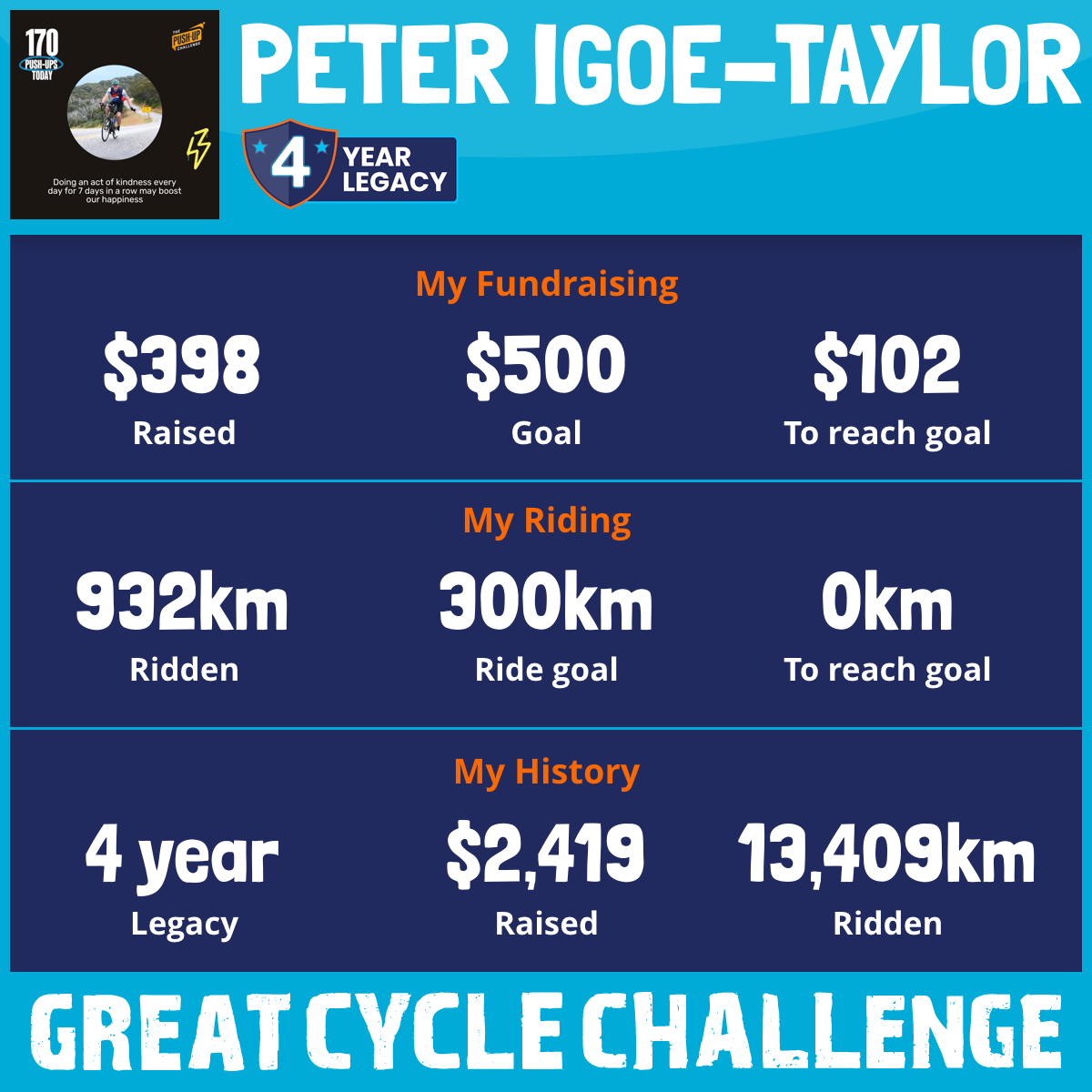 And so I am riding and raising funds to support the Children's Medical Research Institute to continue their work into the prevention, diagnosis, treatment and finding a cure for childhood cancer.