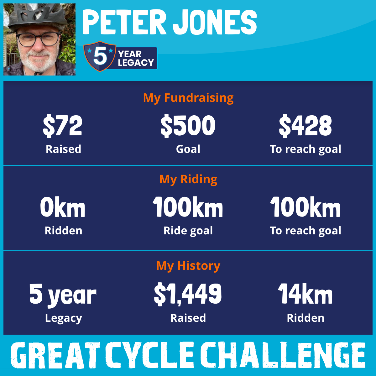 14 km Ridden$1,185 Raised2021