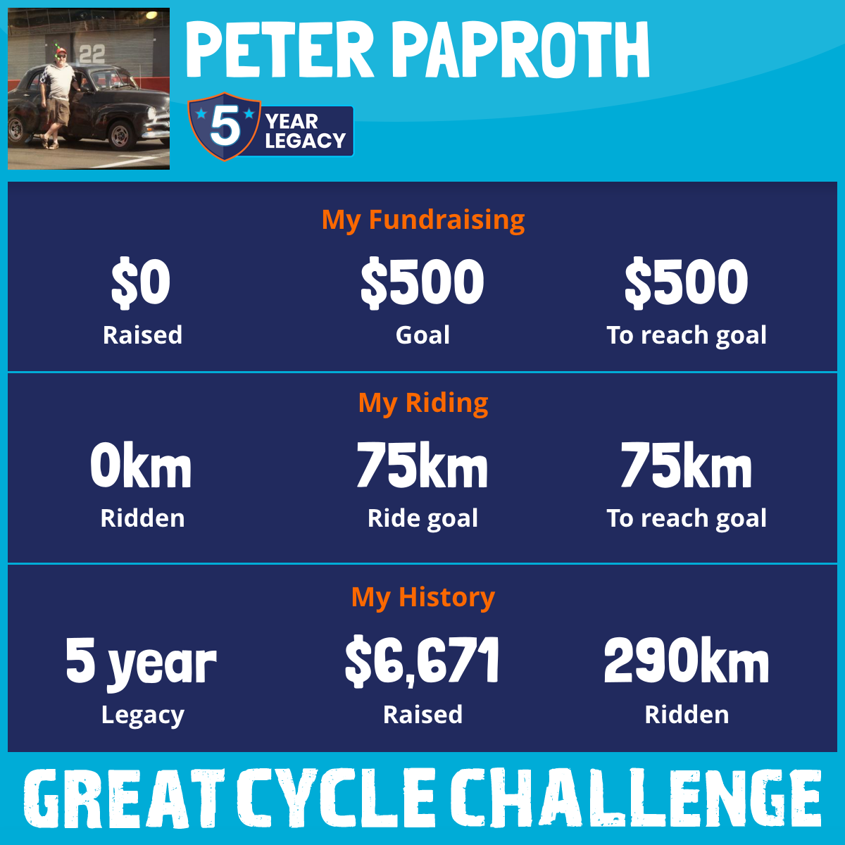 I am riding 75 km for Peter. Please sponsor me and support my challenge to fight kids' cancer and save little lives.