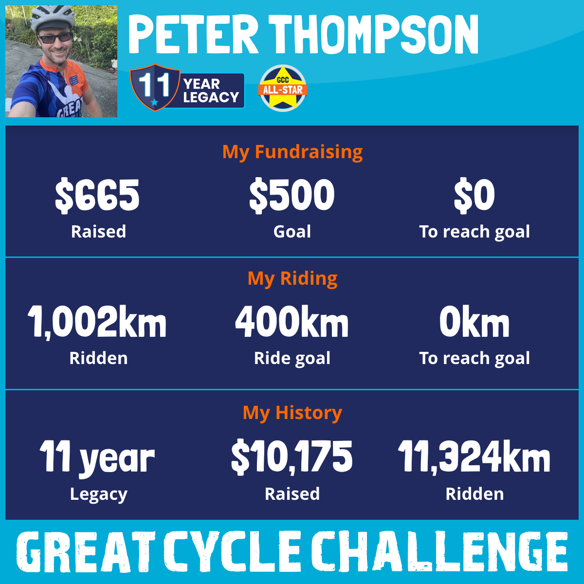 And so I am riding and raising funds to support the Children's Medical Research Institute to continue their work into the prevention, diagnosis, treatment and finding a cure for childhood cancer.