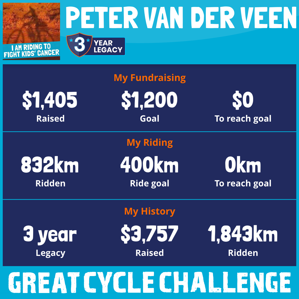 This year I plan to do the “Great Cycle Challenge Australia” again in October. It is a challenge which I have done twice. The purpose of the challenge is to raise funds to pay for the research and elimination of cancer in kids- in other words -Fight Kids Cancer. The money raised goes direct to the hospital for the kids, no middle organisation is involved. I am proud to have been involved in the past and thankful because I can still do it. I have been asked by the captain of a bike team in the ACT again to be a part of the team “The Looser Cranks”. The Team captain is my son Adrian who I taught cycling. My target is to cycle 300km and to raise $500 in October – a beautiful problem if it is more.