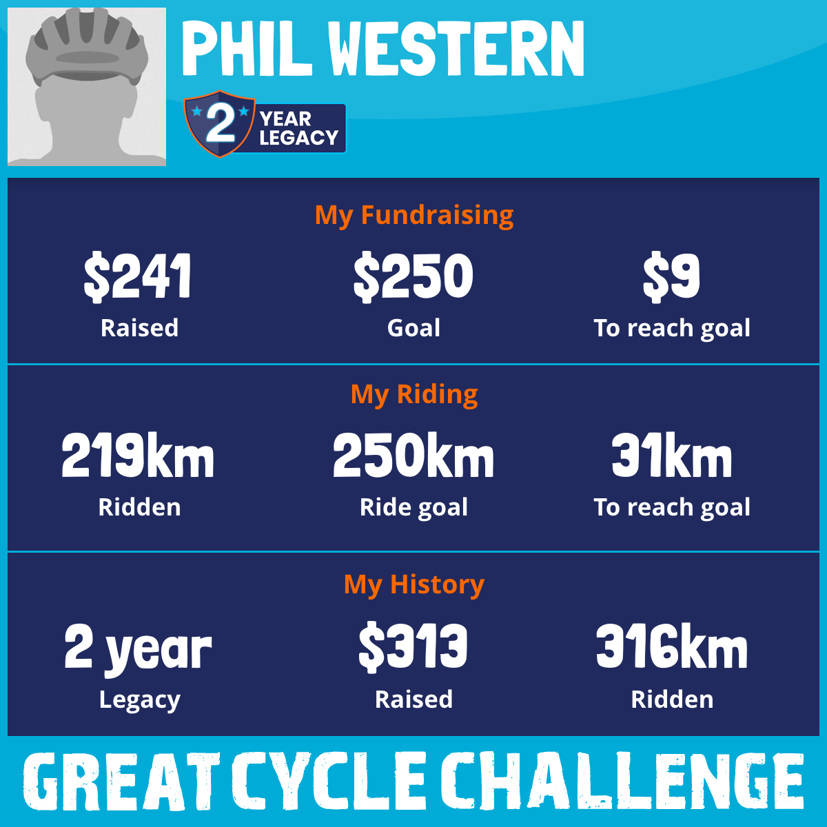 I am riding 300 km for Ray Martin. Please sponsor me and support my challenge to fight kids' cancer and save little lives.