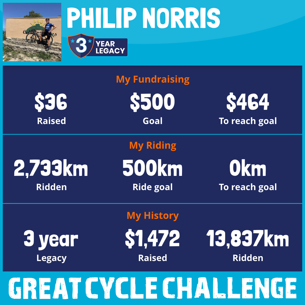 3,569 km Ridden$36 Raised2026