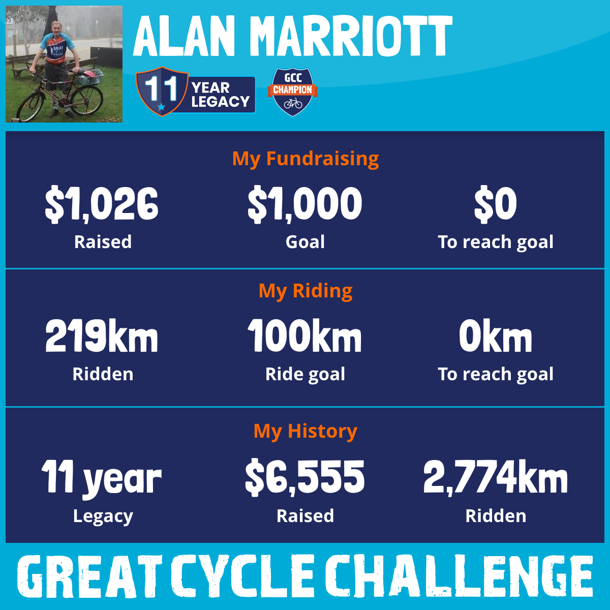 219 km Ridden$1,026 Raised2026