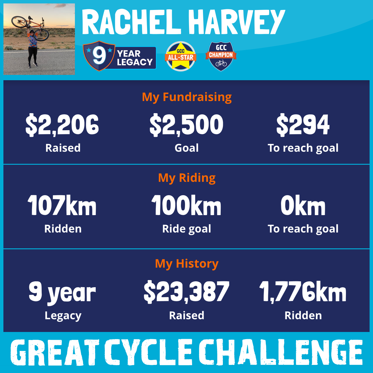 107 km Ridden$2,206 Raised2026