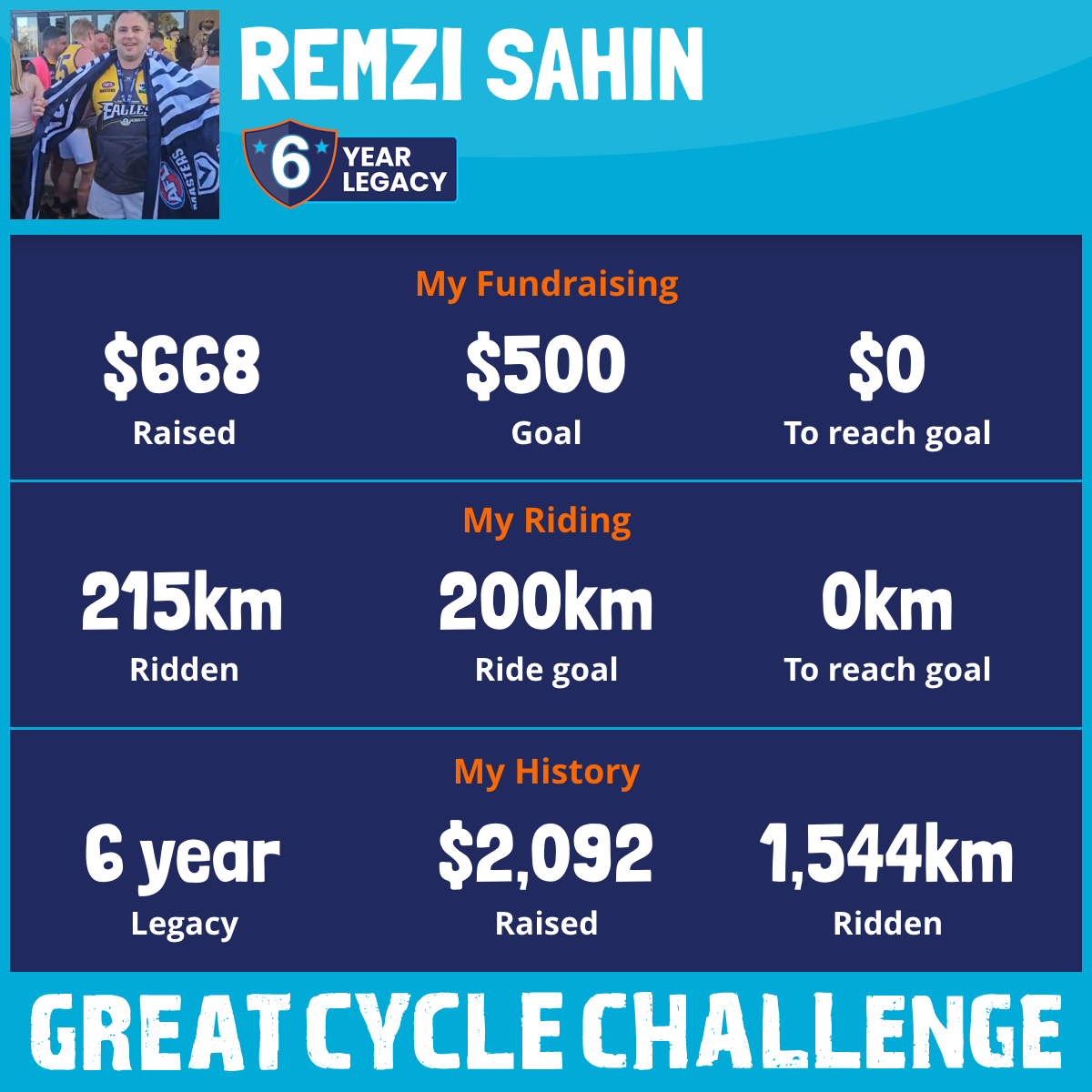 215 km Ridden$668 Raised2025