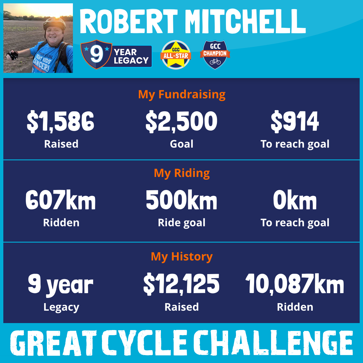 And so I am riding and raising funds to support the Children's Medical Research Institute to continue their work into the prevention, diagnosis, treatment and finding a cure for childhood cancer.