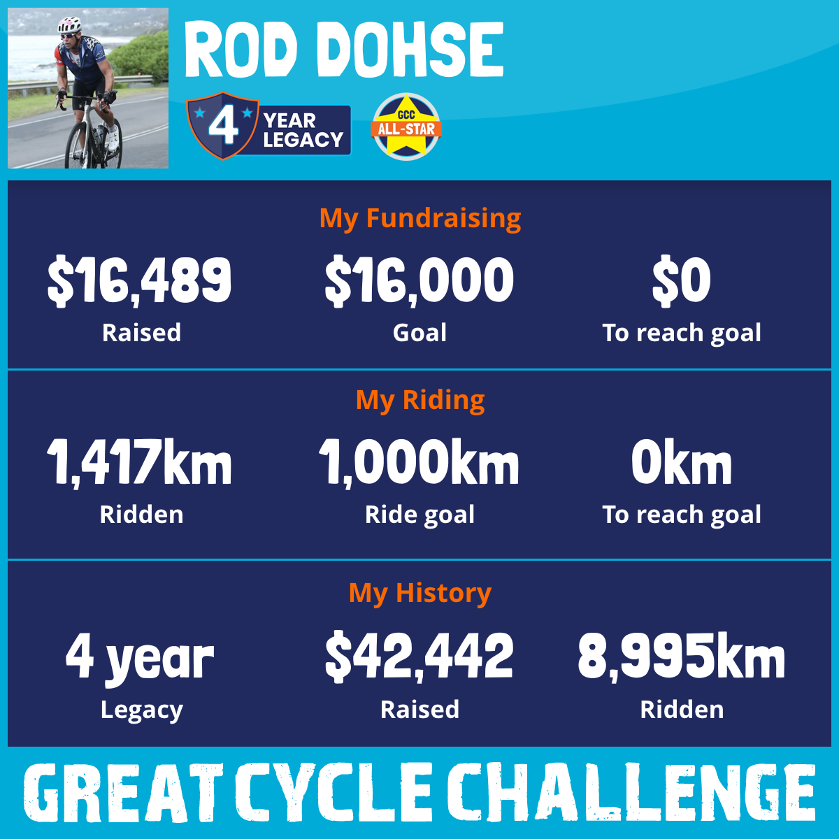 This will be my fourth year riding the Great Cycle Challenge raising funds for research, care and support for our youngest Australians battling cancer.