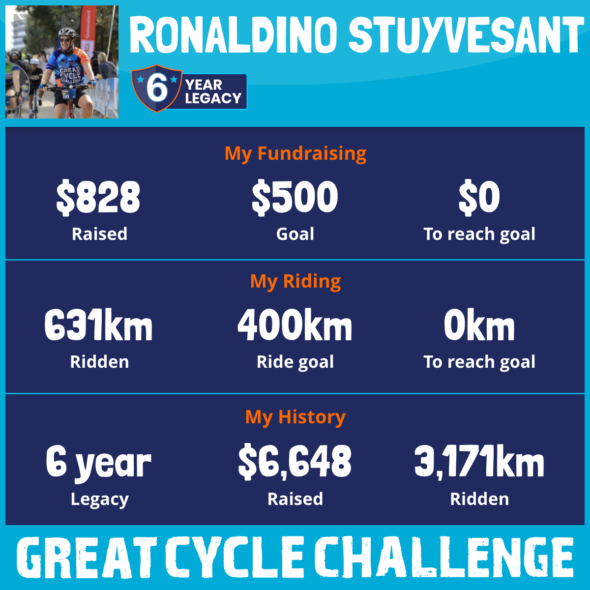 631 km Ridden$828 Raised2025