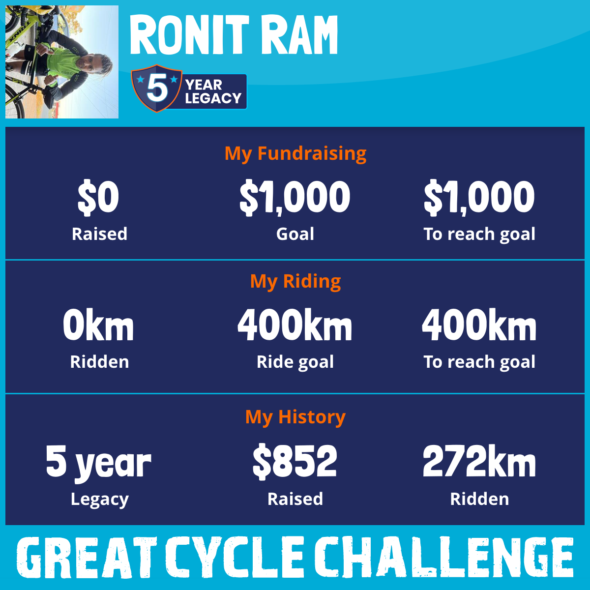 And so I am riding and raising funds to support the Children's Medical Research Institute to continue their work into the prevention, diagnosis, treatment and finding a cure for childhood cancer.