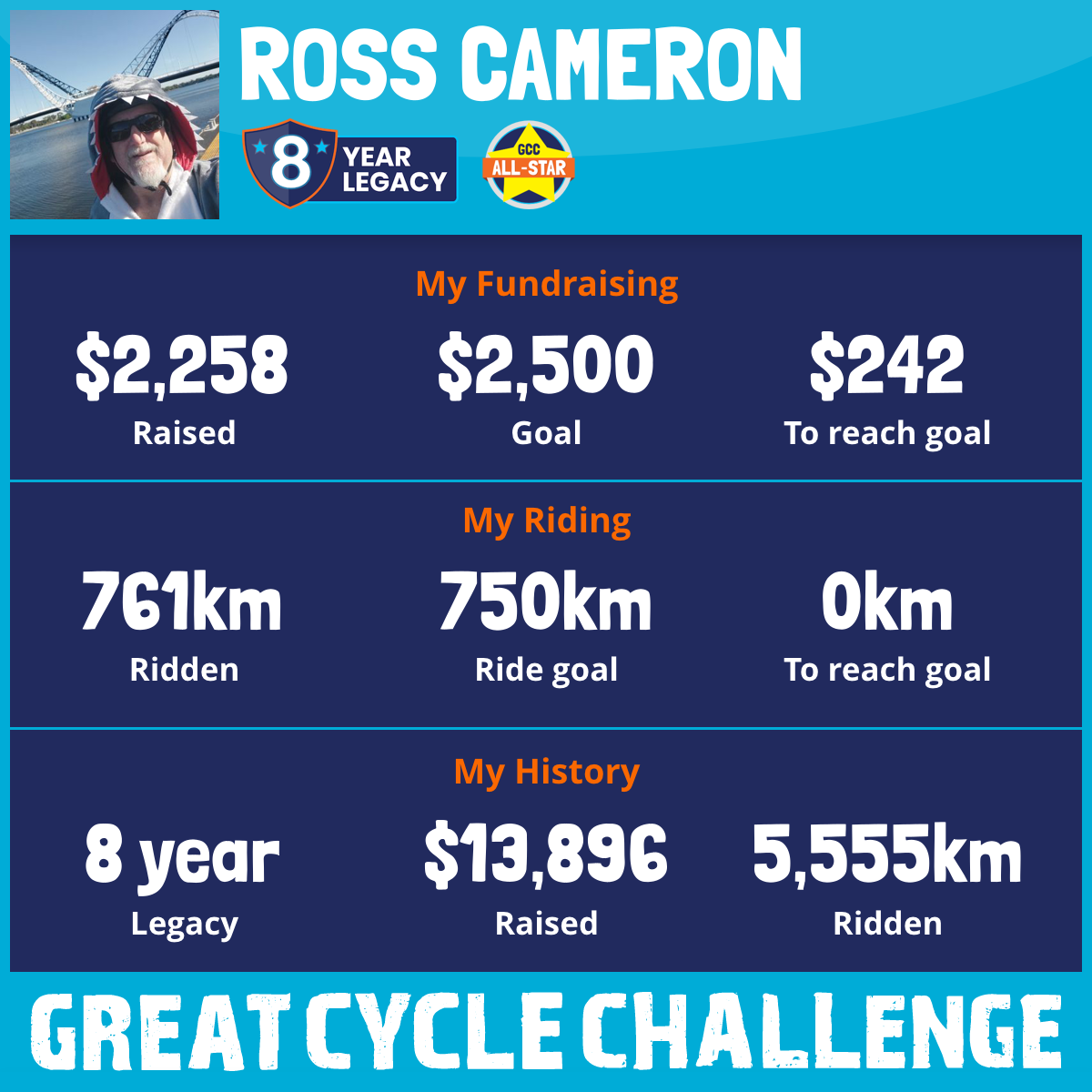 Too many people I know have been affected by cancer. The research being funded by the Great Cycle Challenge will not only help kids fighting cancer but flow on to help everyone affected.