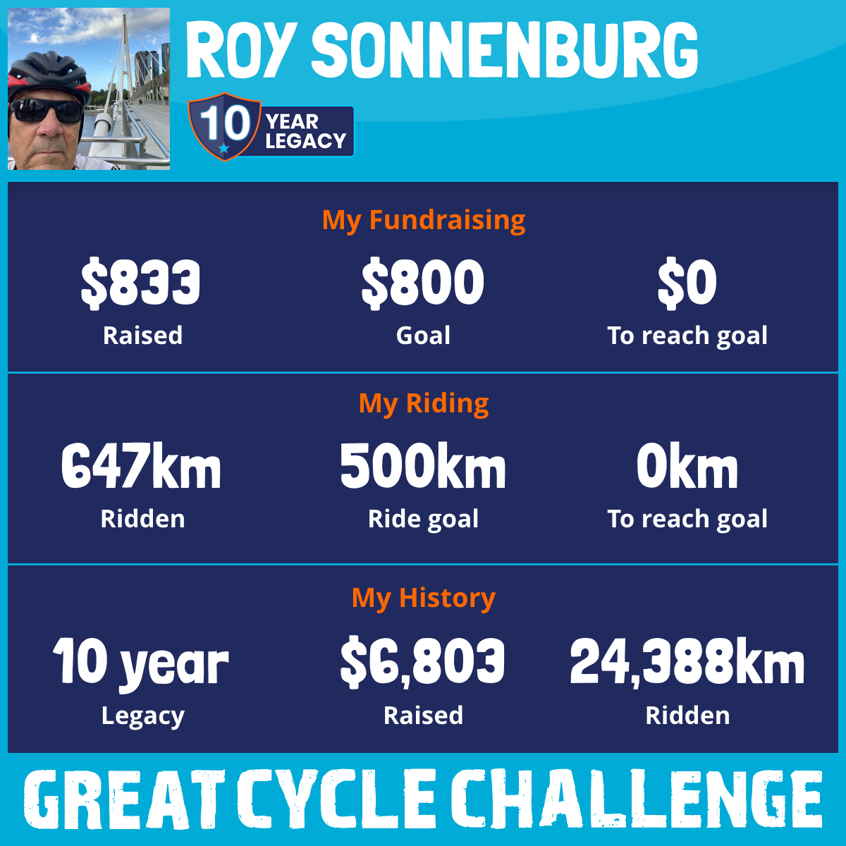 876 km Ridden$833 Raised2026