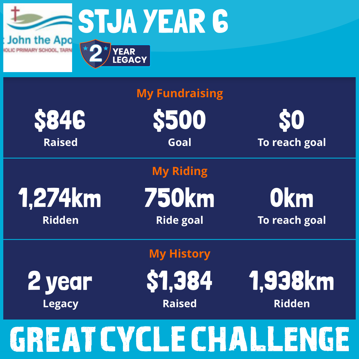 1,274 km Ridden$846 Raised2026