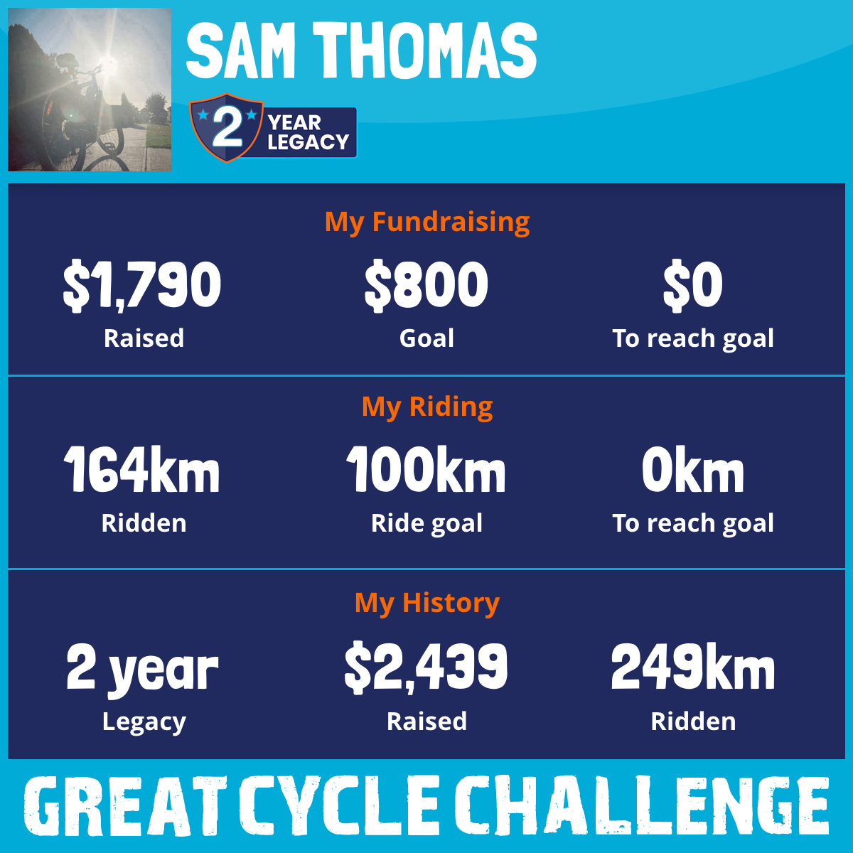 164 km Ridden$1,790 Raised2026