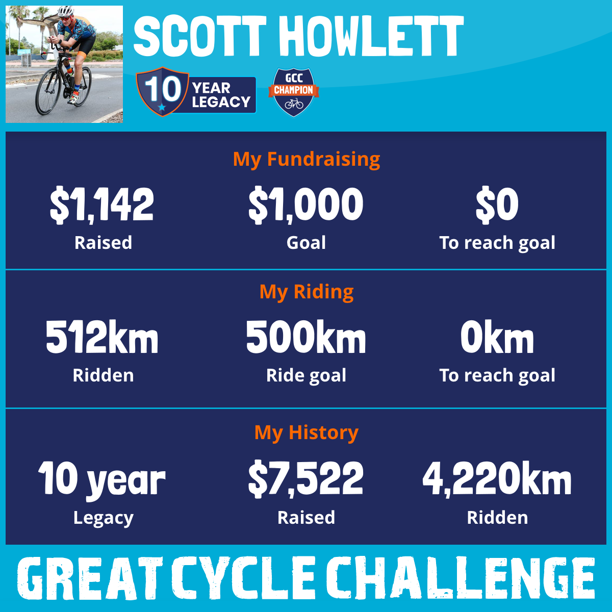 516 km Ridden$1,142 Raised2026