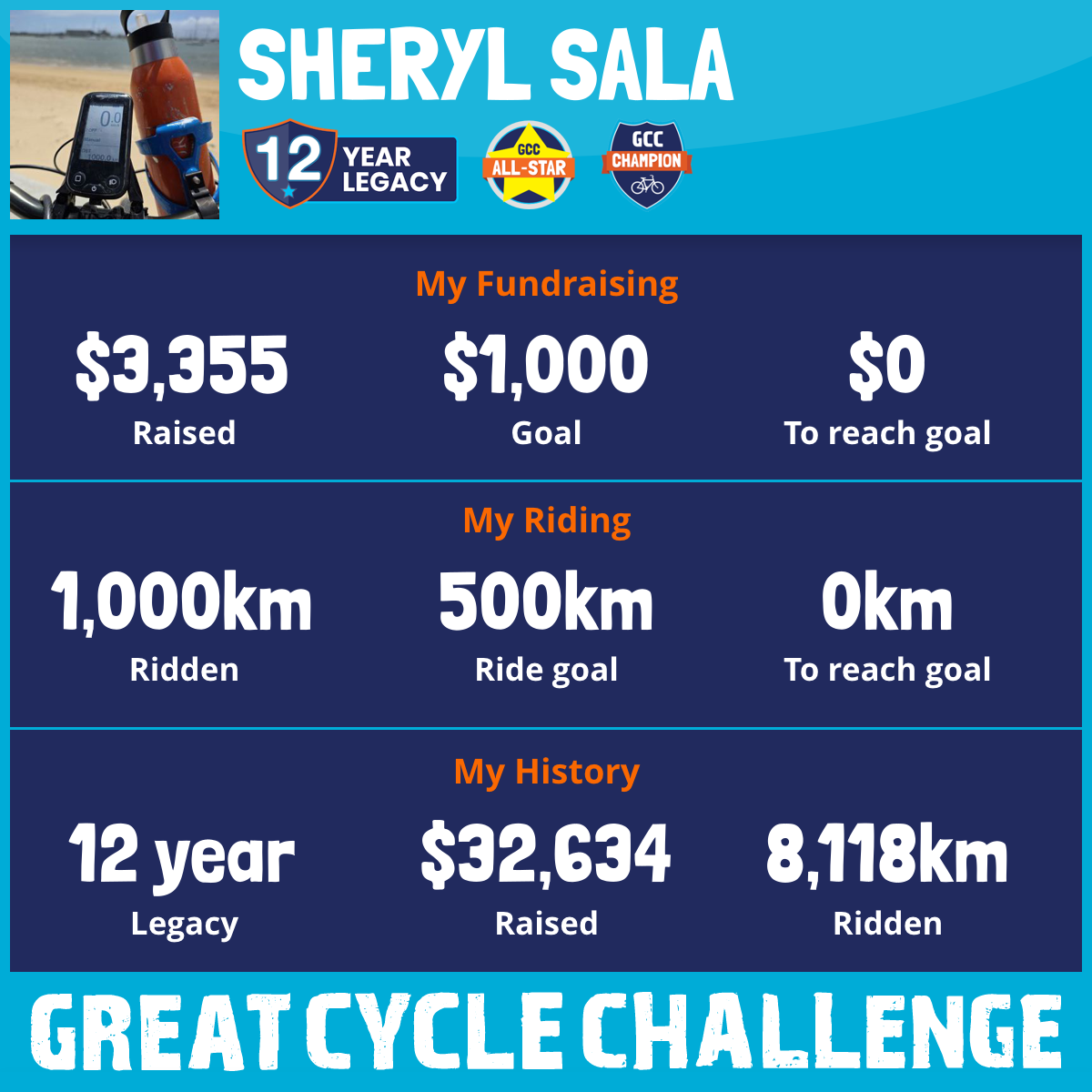 1,000 km Ridden$3,355 Raised2026