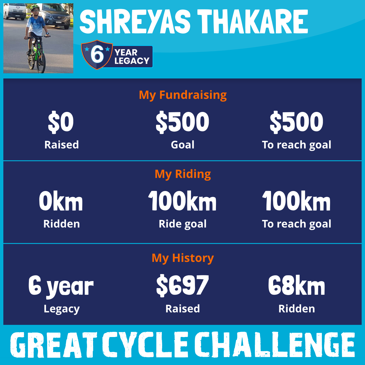 I am riding 100 km in memory of my grandfather, Anil Thakare and Gradmother, Pushpa Thakare. Please sponsor me and support my challenge to fight kids' cancer and save little lives.