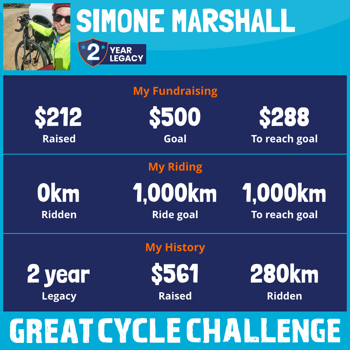 280 km Ridden$349 Raised2016