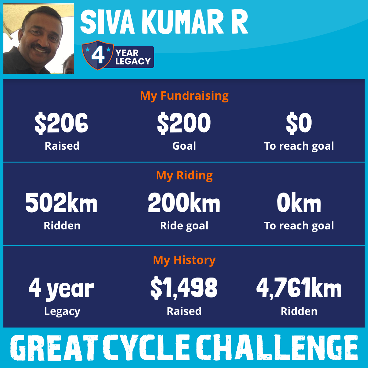 This marks my forth year taking on the Great Cycle Challenge to help give kids the future they deserve. Childhood cancer remains the leading cause of death by disease in Australia, with over 600 kids diagnosed each year and three young lives lost every week. No child should have to fight for their life.